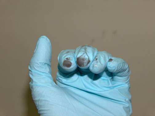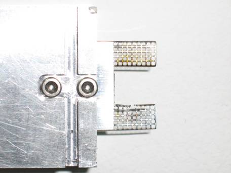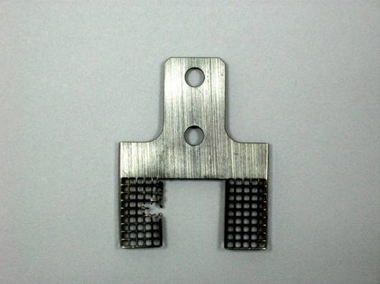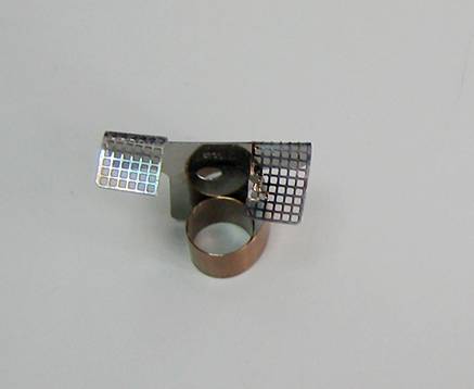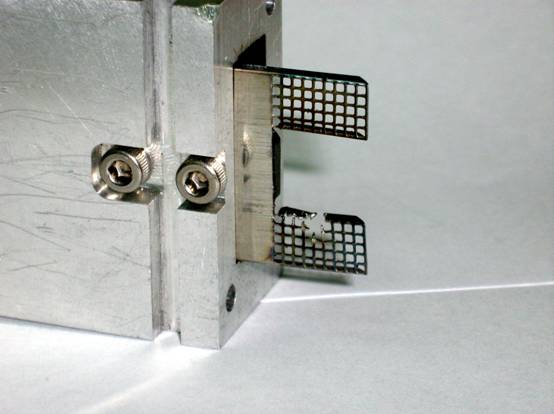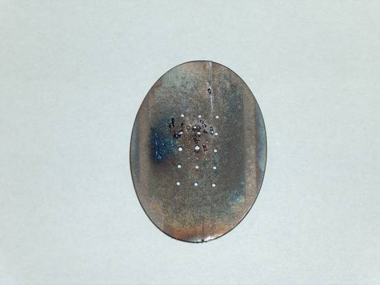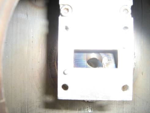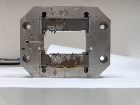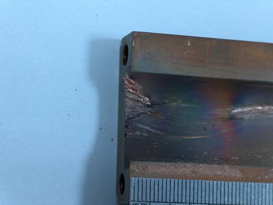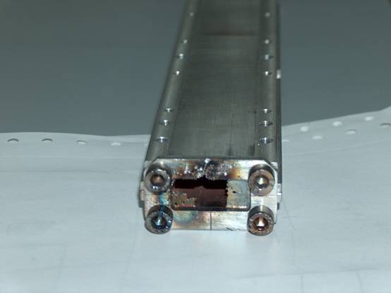 Damage to the grid reflector (left side) caused by e- beam interception: