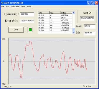 המסך הראשי מציג את הספיקה הנוכחית (בגרף ובחלון), שגיאת המדידה המחושבת (בחלון)