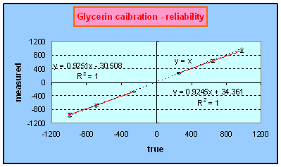 גרף אמינות של גליצרין. השוואה בין מדידת המכשיר